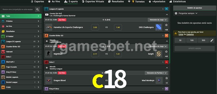 A aposta c18 oferece aos jogadores a experiência mais conveniente de apostas em eSports!